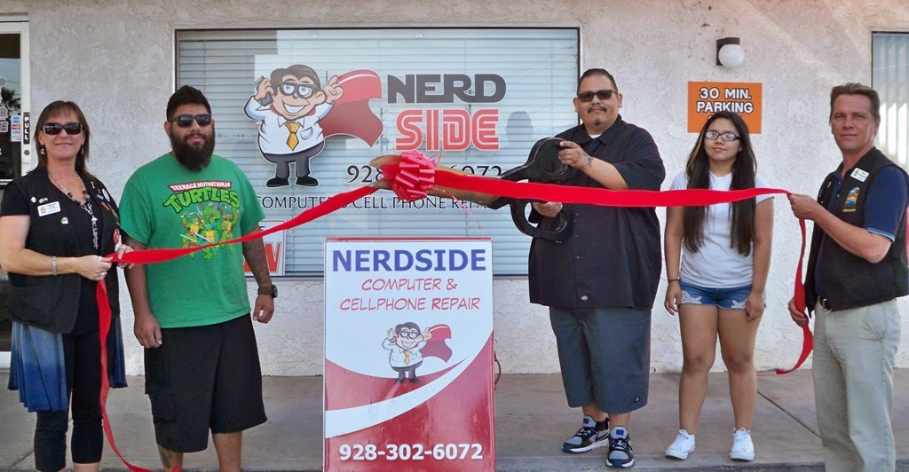 The Lake Havasu Area Chamber Ambassadors held a ribbon cutting ceremony for Nerdside Computer Repair, celebrating its Chamber membership. Attending the ribbon cutting ceremony from left to right were Sharone Jerzy, Angel Florez, Adrian Ramirez, Yazmeen Ruiz, and Steve Goodman. Nerdside Computer Repair specializes in computer, laptop, cell phone, and tablet repairs at affordable prices with mobile services available. For more information contact them at 928-302-6072.